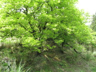 明神橋を渡って県道38号線を進みます。43号線は小川方面で,滝ノ拝という名勝地に至ります。小川上流にはダムが無く,今でも清流を維持しています。ときどきTVで紹介されています。樹木が色づいて見えています。樫の木の開花時期です。