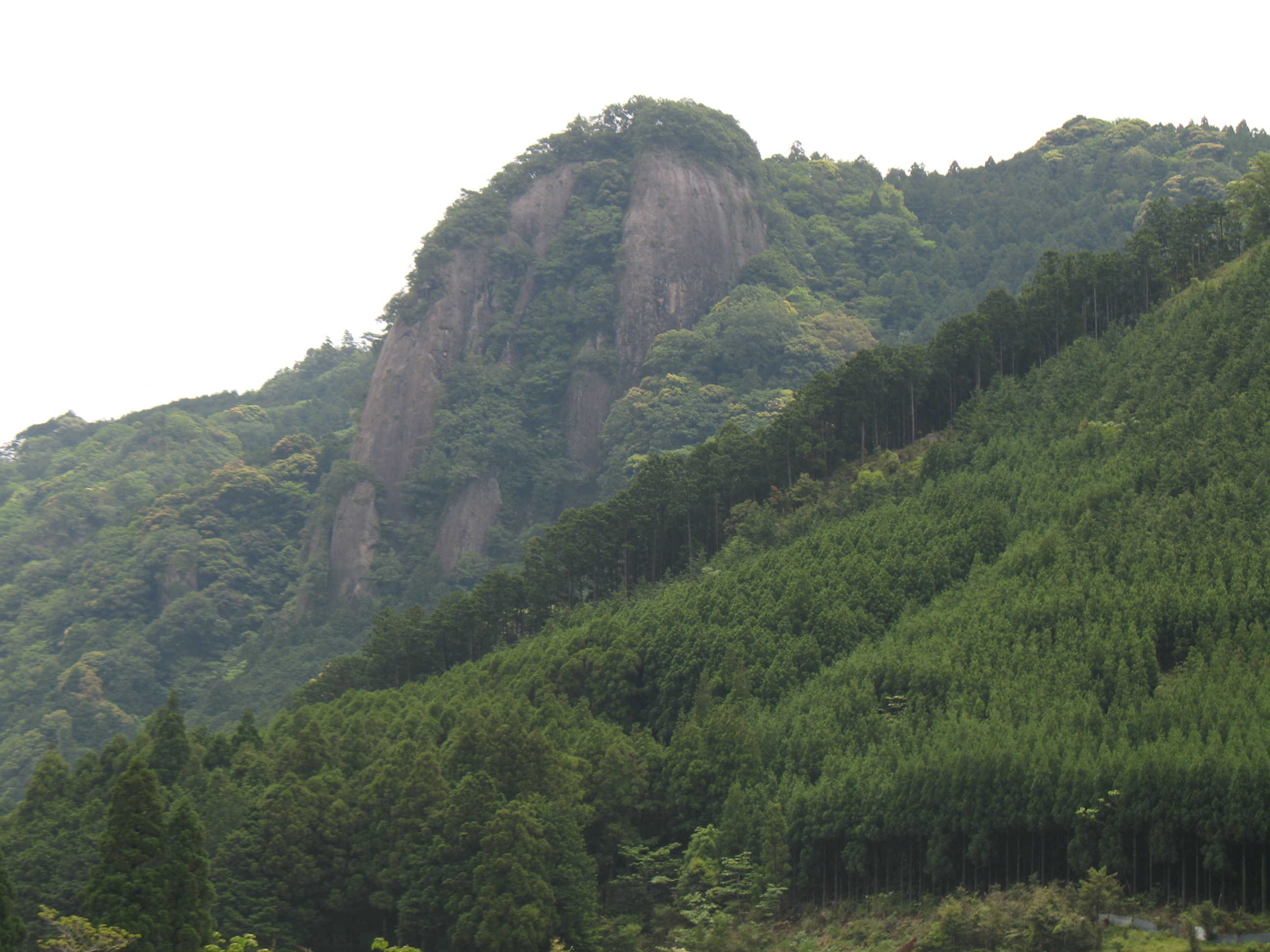 ここは蔵土(くろず)です。三尾川まで2kmのところまで来ました。なつかしの光景です。親指のような巨岩です。天柱岩は学校からも見えました。