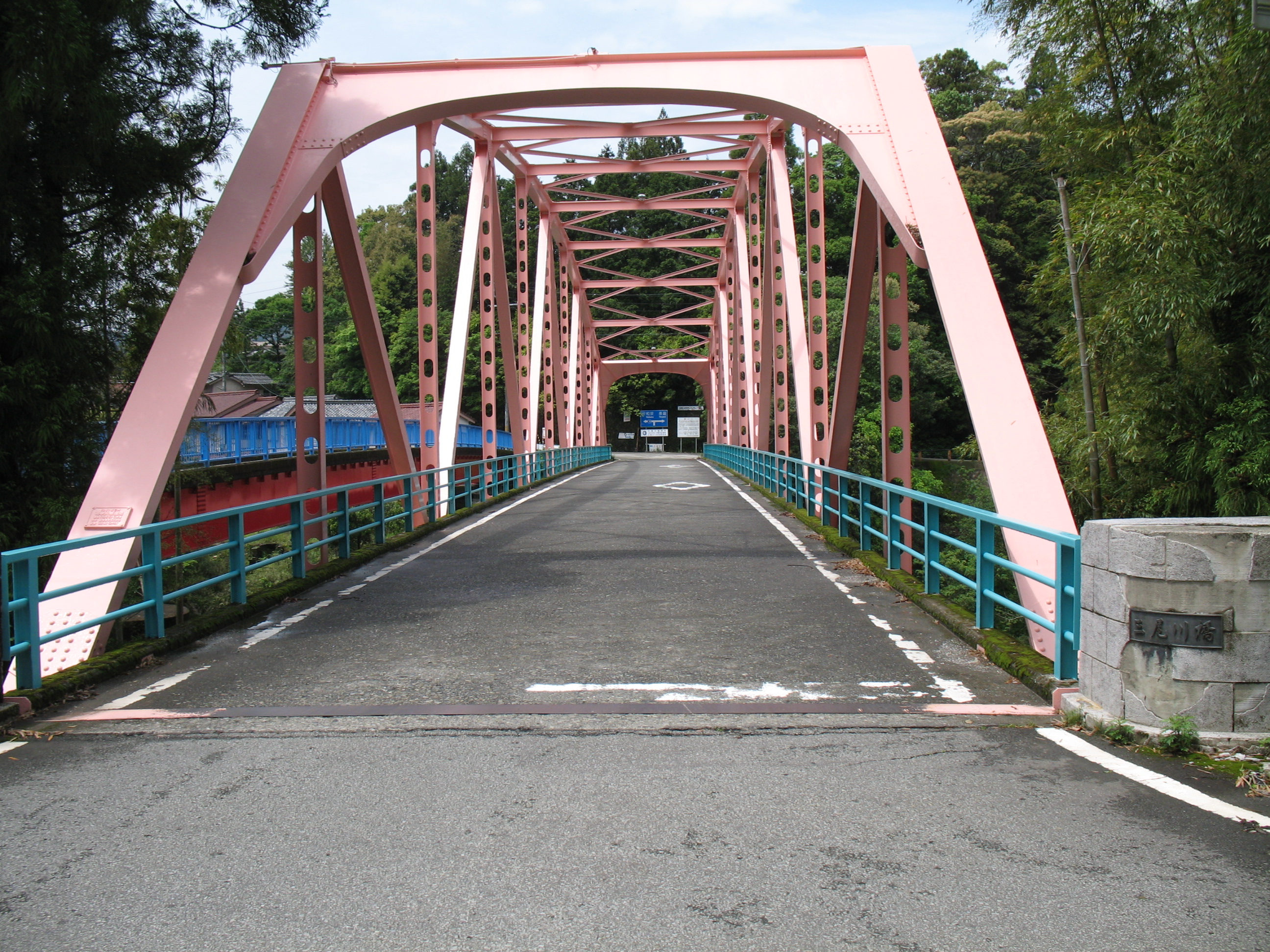 古座川ダムから三尾川まで戻ってきました。なつかしの小,中学校に向かいます。この橋は中学2年(昭和35年)のころに付け替えられました。それまではつり橋でした。写真からもお分かりのように,鋲構造です。鋲打ち作業を興味津々で見ていました。